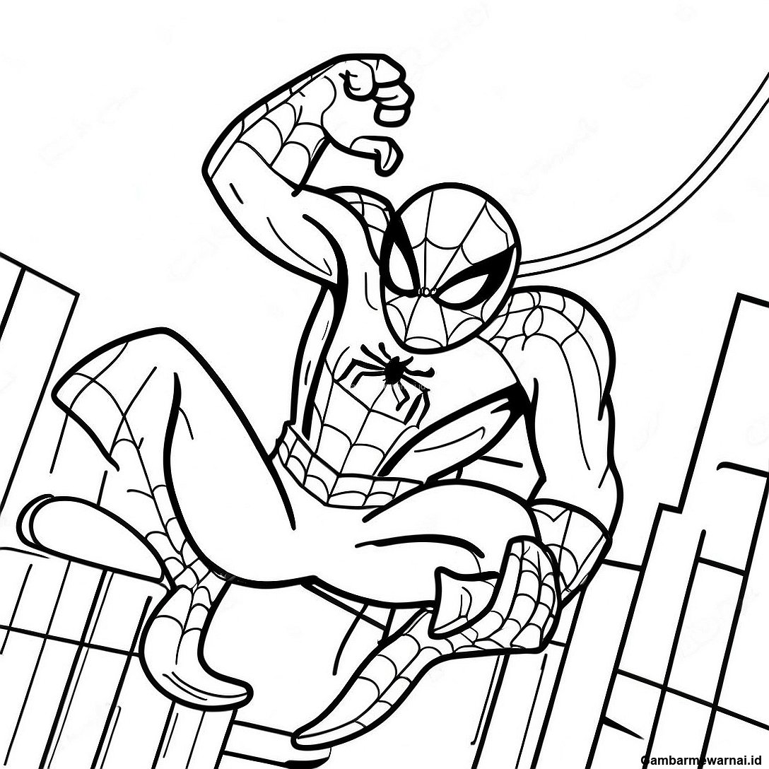 Halaman Mewarnai Spider Man Dalam Pose Aksi