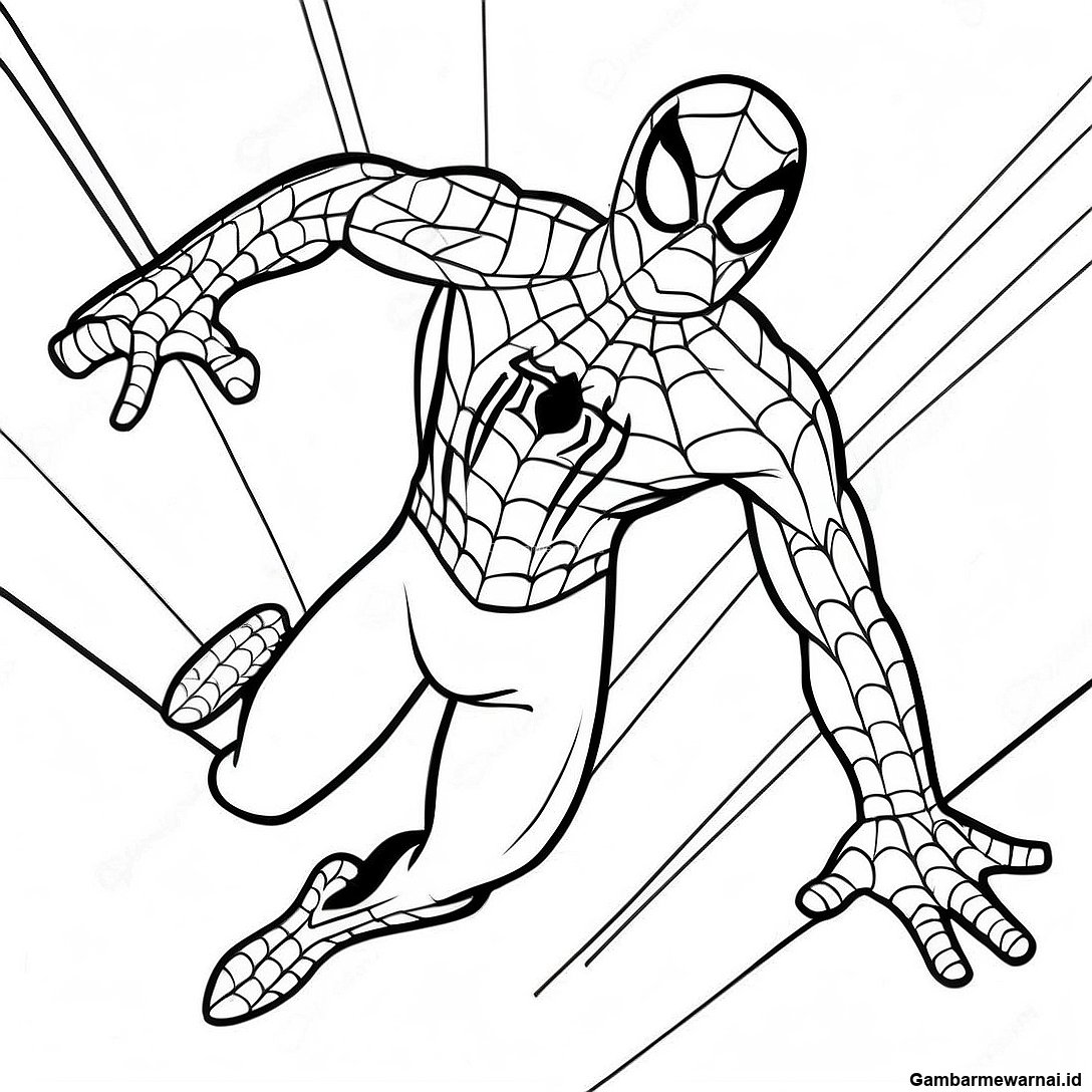 Gambar Mewarnai Spider Man dalam Pose Aksi