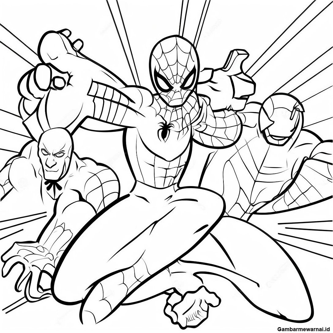 Gambar Mewarnai Spider Man Melawan Penjahat