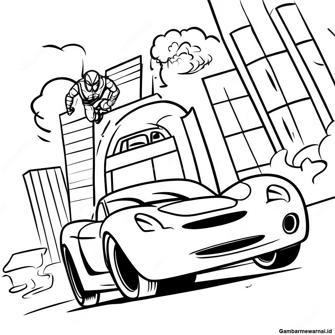 Unduh PDF yang Dapat Dicetak dari Halaman Mewarnai Spiderman Mengemudikan Mobil Cepat