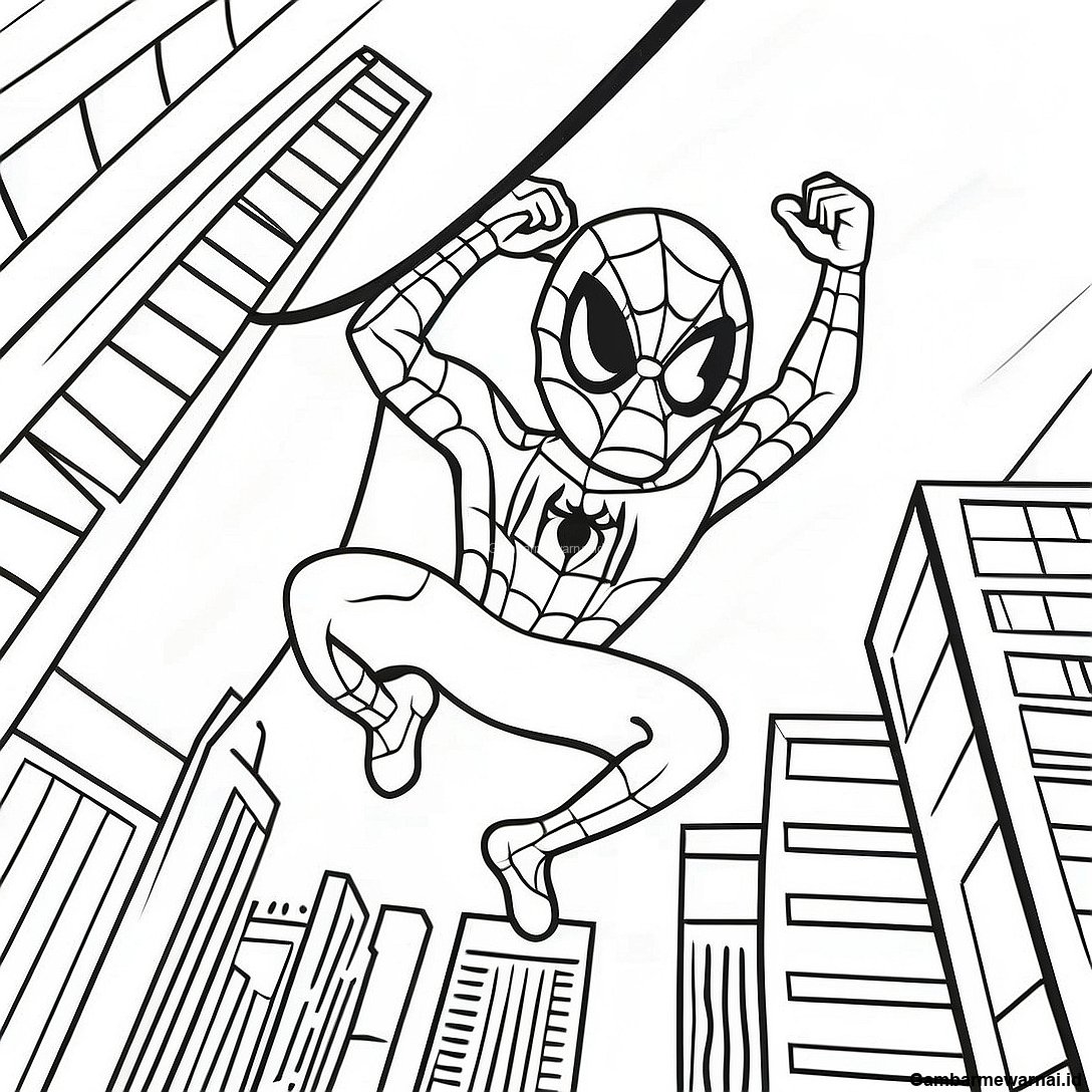 Halaman Mewarnai Spiderman Menggemaskan Melompat Di Kota