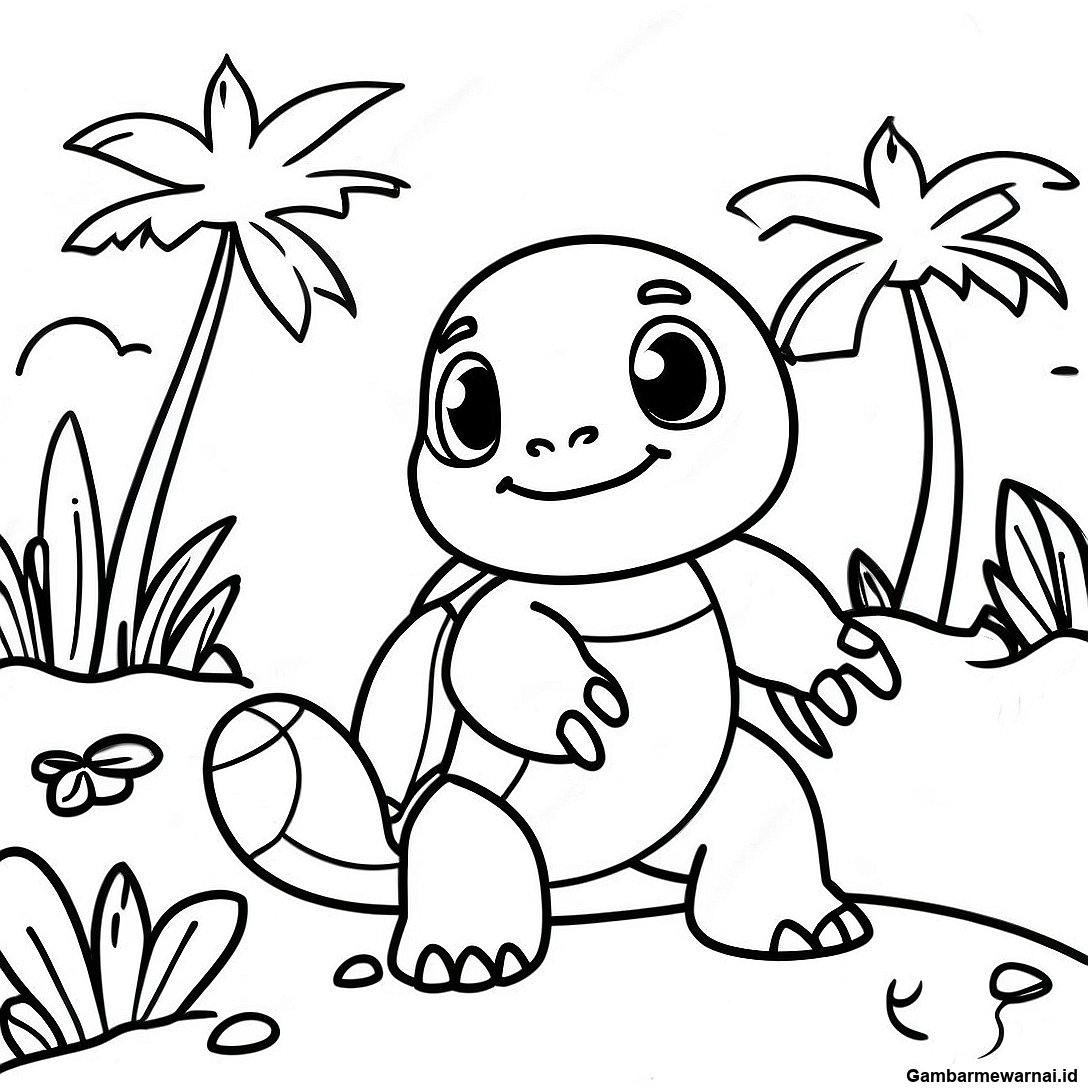 Halaman Mewarnai Squirtle Di Surga Tropis