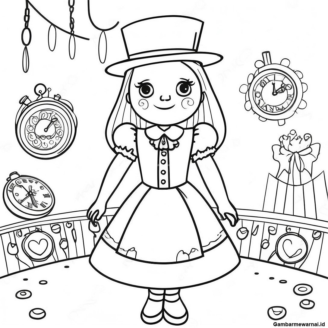 Halaman Mewarnai Steampunk Alice Di Negeri Ajaib