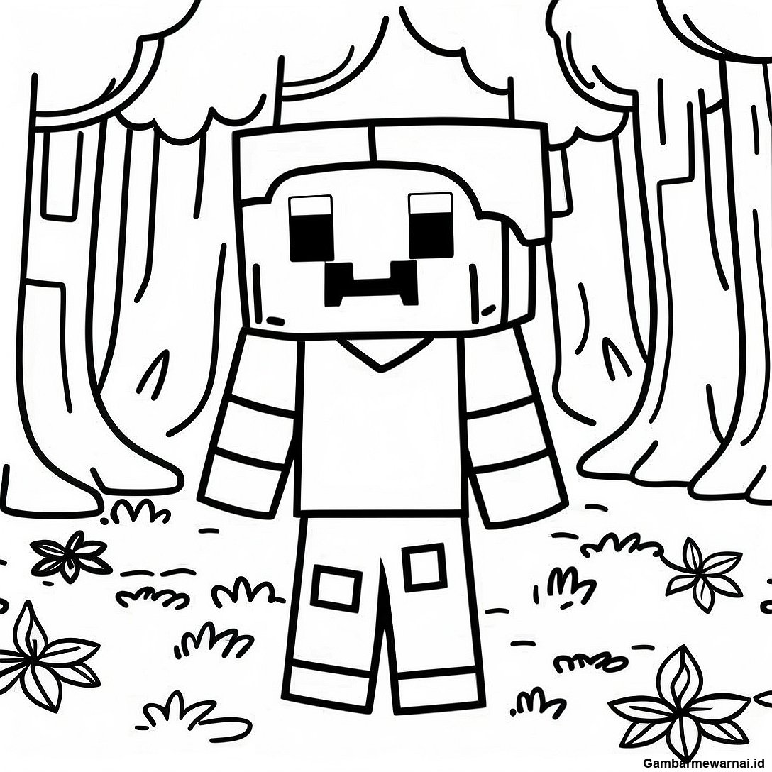 Halaman Mewarnai Steve Dari Minecraft Di Hutan