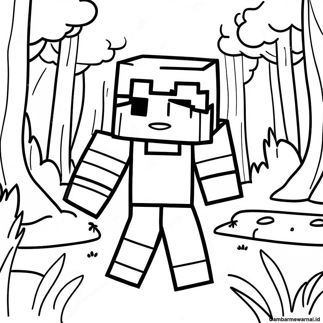 Halaman Mewarnai Steve Dari Minecraft Di Hutan