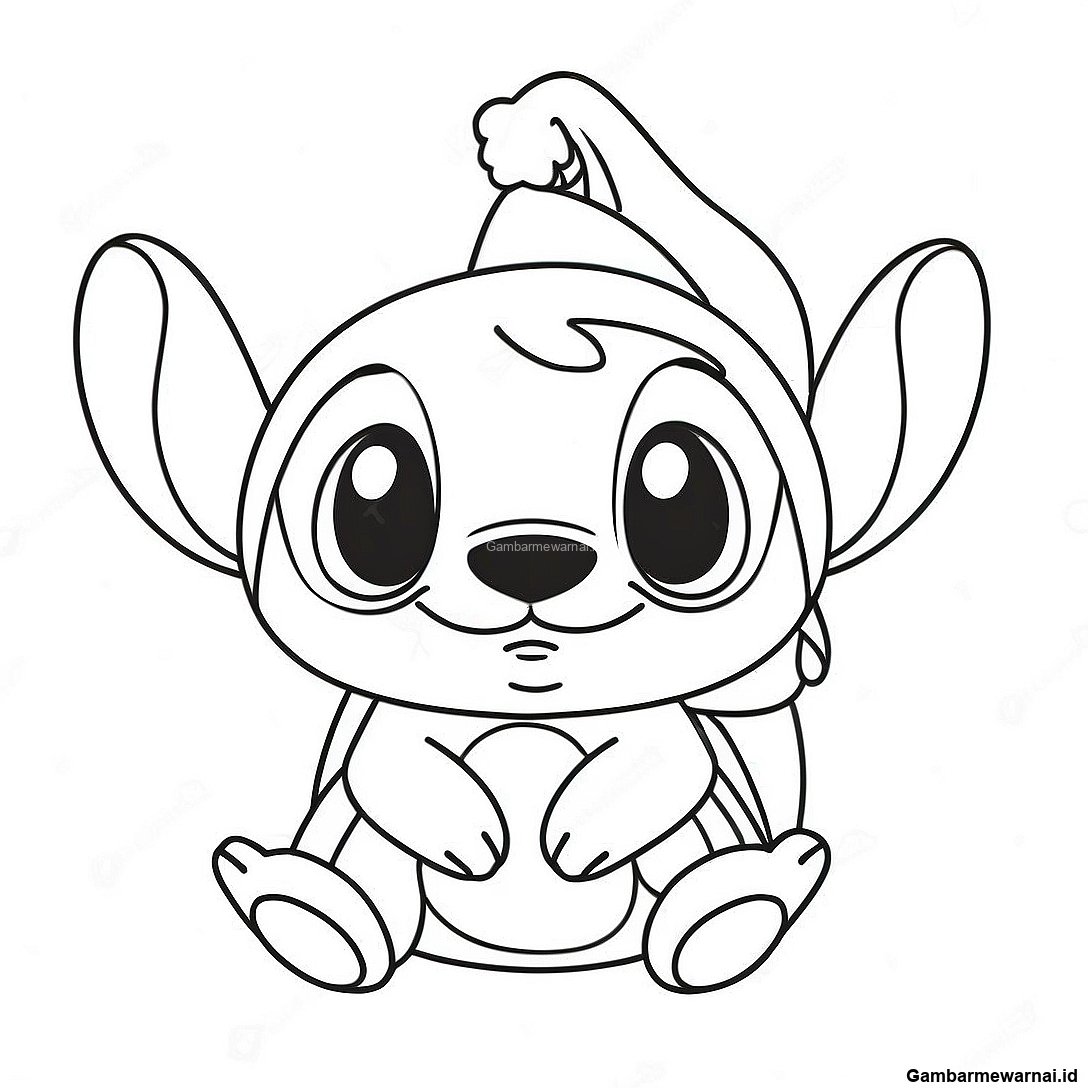 Halaman Mewarnai Stitch Menggemaskan Dengan Topi Santa 73778 17231