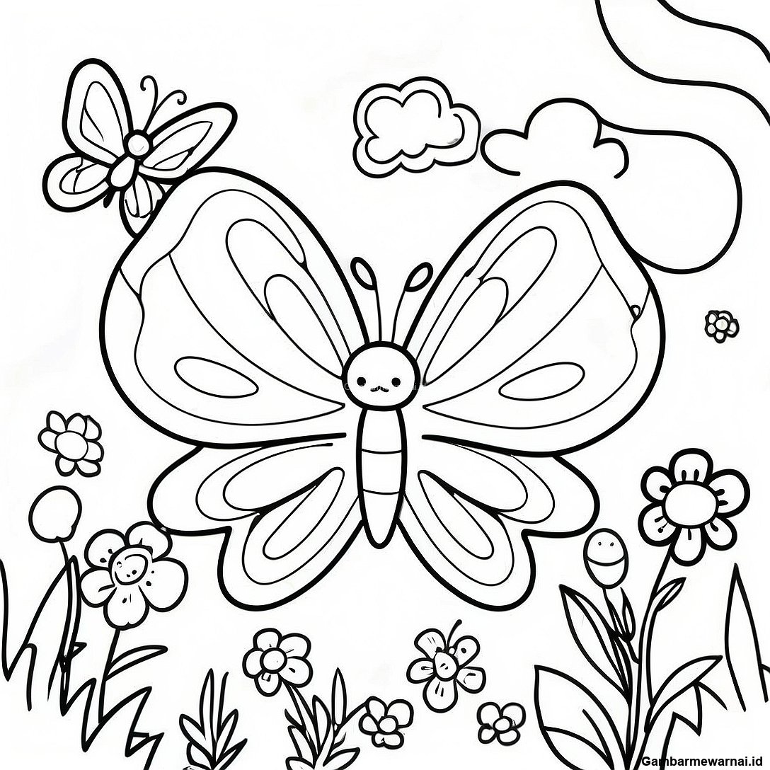 Halaman Mewarnai Taman Kupu Kupu Berwarna