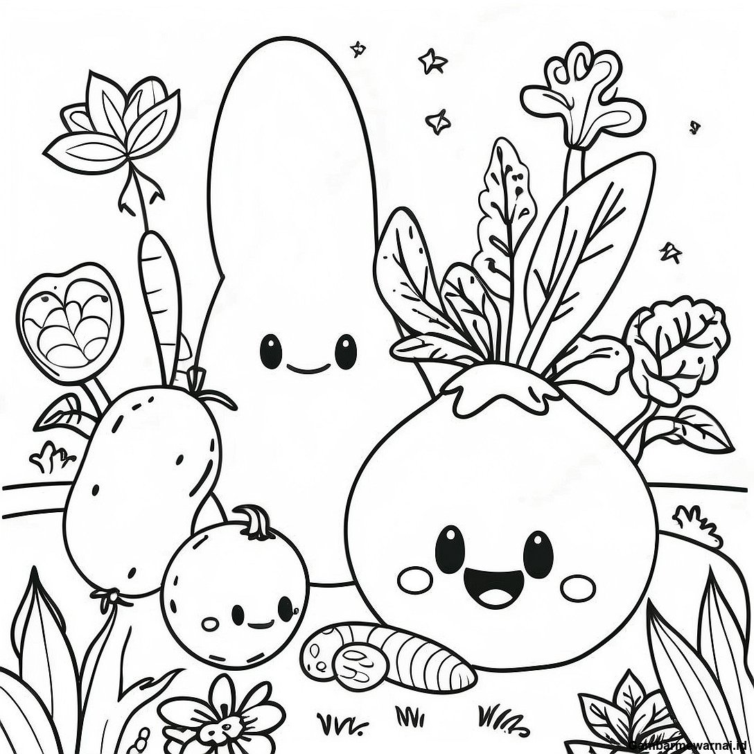 Halaman Mewarnai Taman Sayuran Yang Unik
