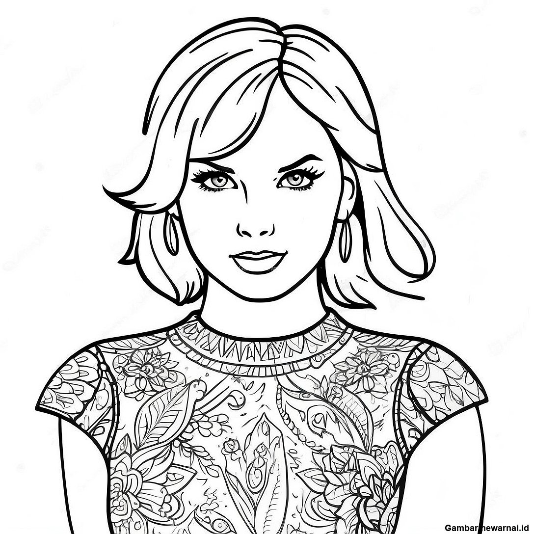 Halaman Mewarnai Taylor Swift Dengan Pakaian Berwarna-Warni