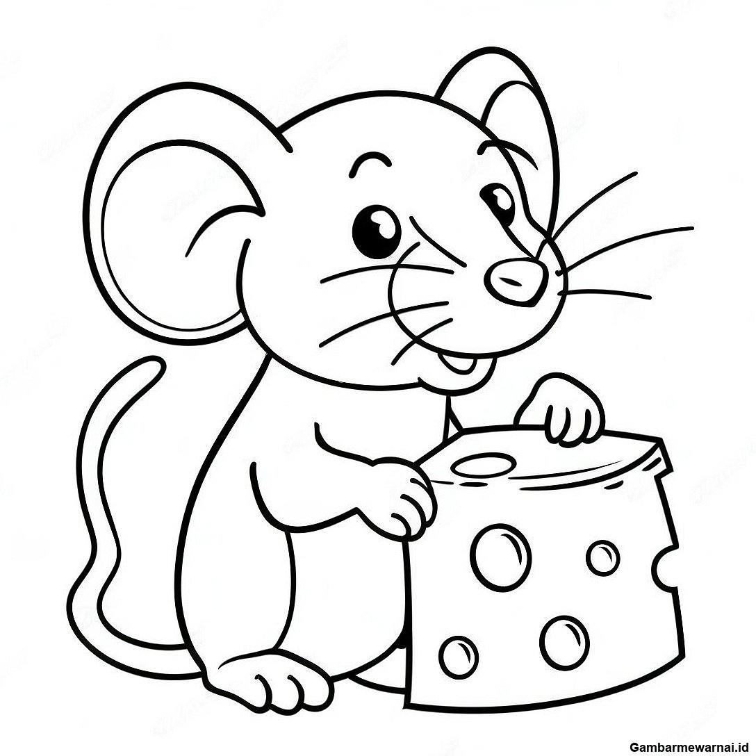 Halaman Mewarnai Tikus Lucu Dengan Keju