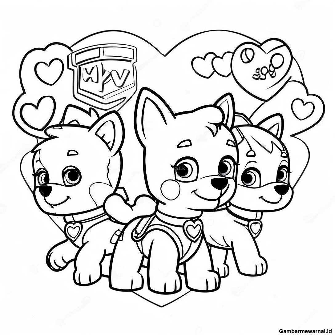Halaman Mewarnai Tim Paw Patrol Yang Menggemaskan Dengan Hati