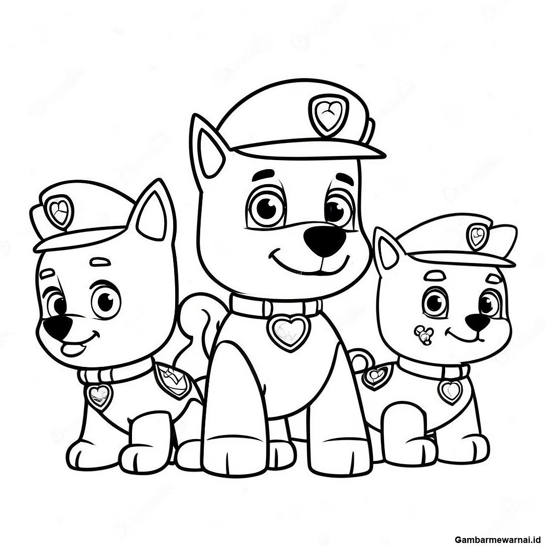 Halaman Mewarnai Tim Paw Patrol Yang Menggemaskan Dengan Hati