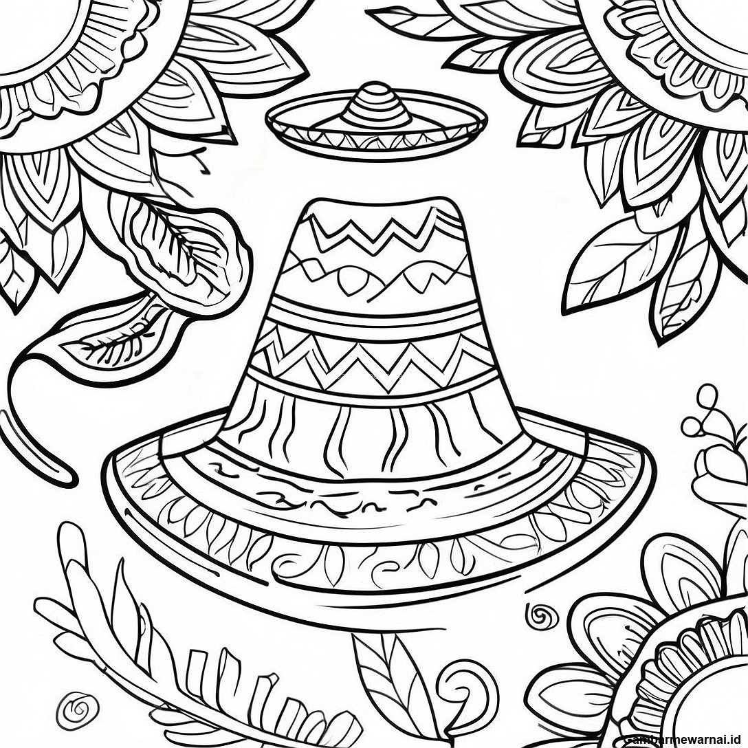 Unduh PDF yang Dapat Dicetak dari Halaman Mewarnai Topi Tradisional Meksiko