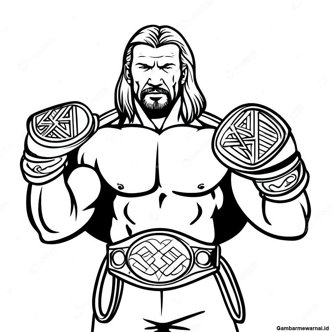 Halaman Mewarnai Triple H Dinamis Memegang Dua Sabuk