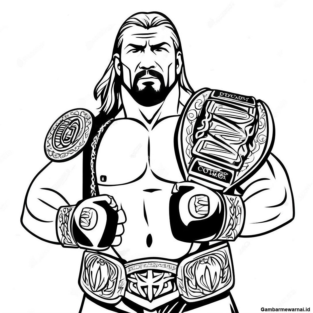 Halaman Mewarnai Triple H Memegang Dua Sabuk