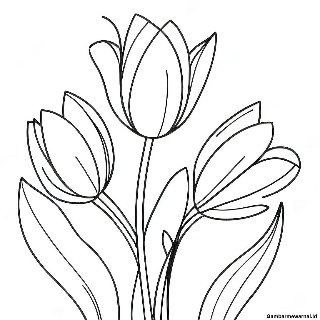 Halaman Mewarnai Tulip Berwarna Warni Yang Mekar