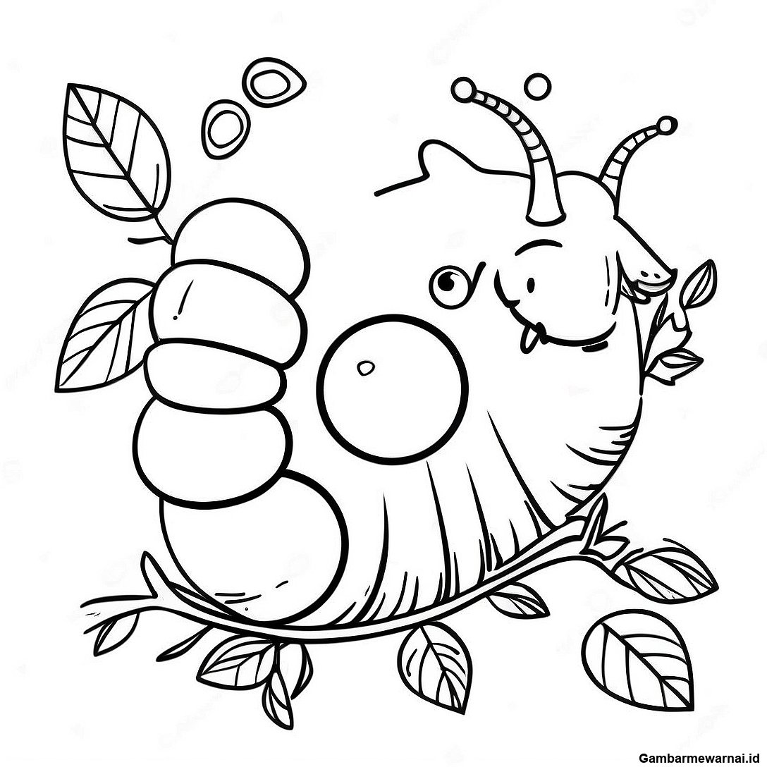 Halaman Mewarnai Ulat Lucu Di Daun