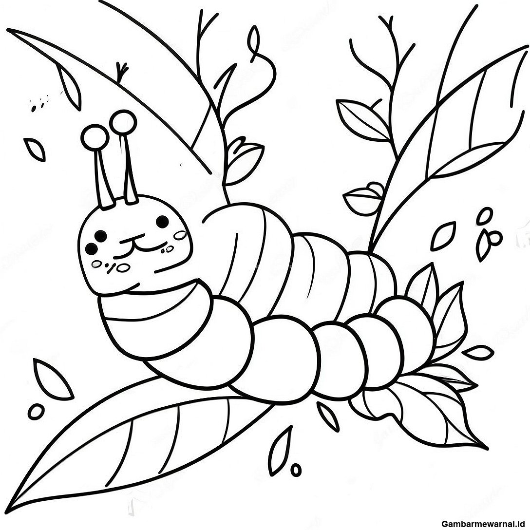 Halaman Mewarnai Ulat Lucu Di Daun 127760 61324