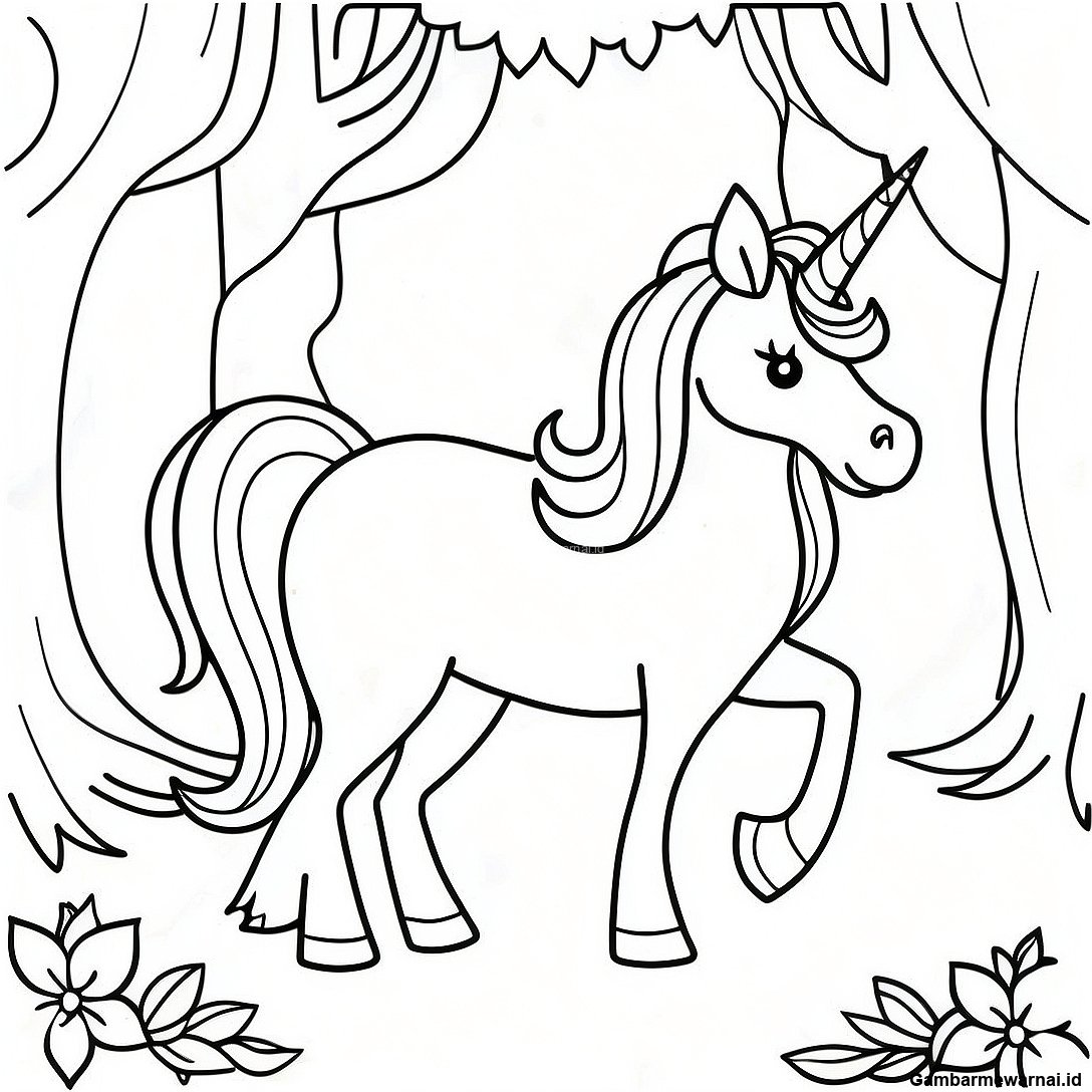 Halaman Mewarnai Unicorn Mistis Di Hutan Ajaib