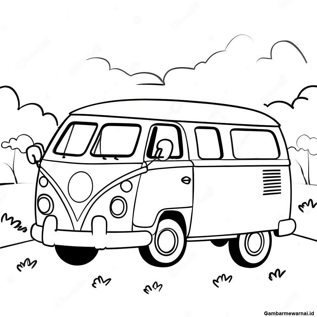Unduh PDF yang Dapat Dicetak dari Halaman Mewarnai Van Berwarna Di Jalan