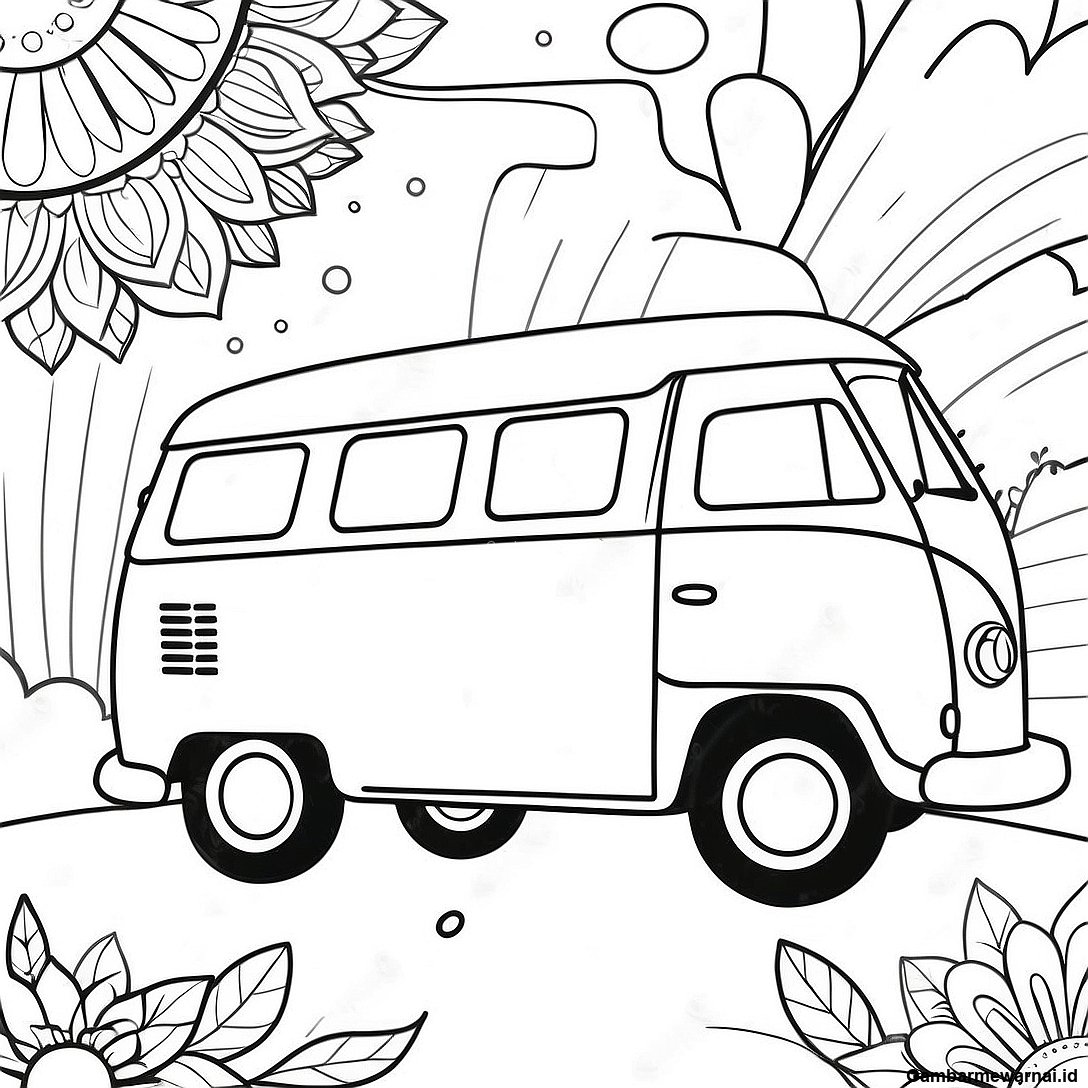 Halaman Mewarnai Van Hippie Yang Berwarna Warni