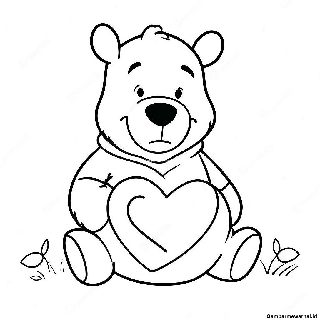 Halaman Mewarnai Winnie The Pooh Dengan Hati Besar