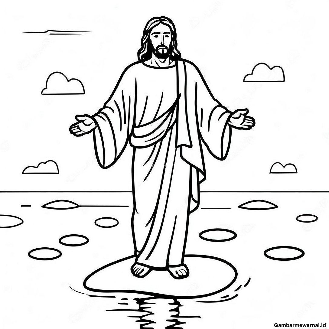 Halaman Mewarnai Yesus Berjalan Di Atas Air
