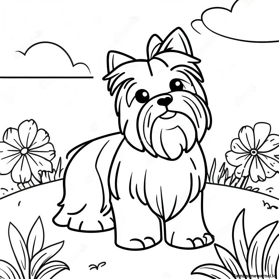 Halaman Mewarnai Yorkie Realistis Berbulu Di Taman