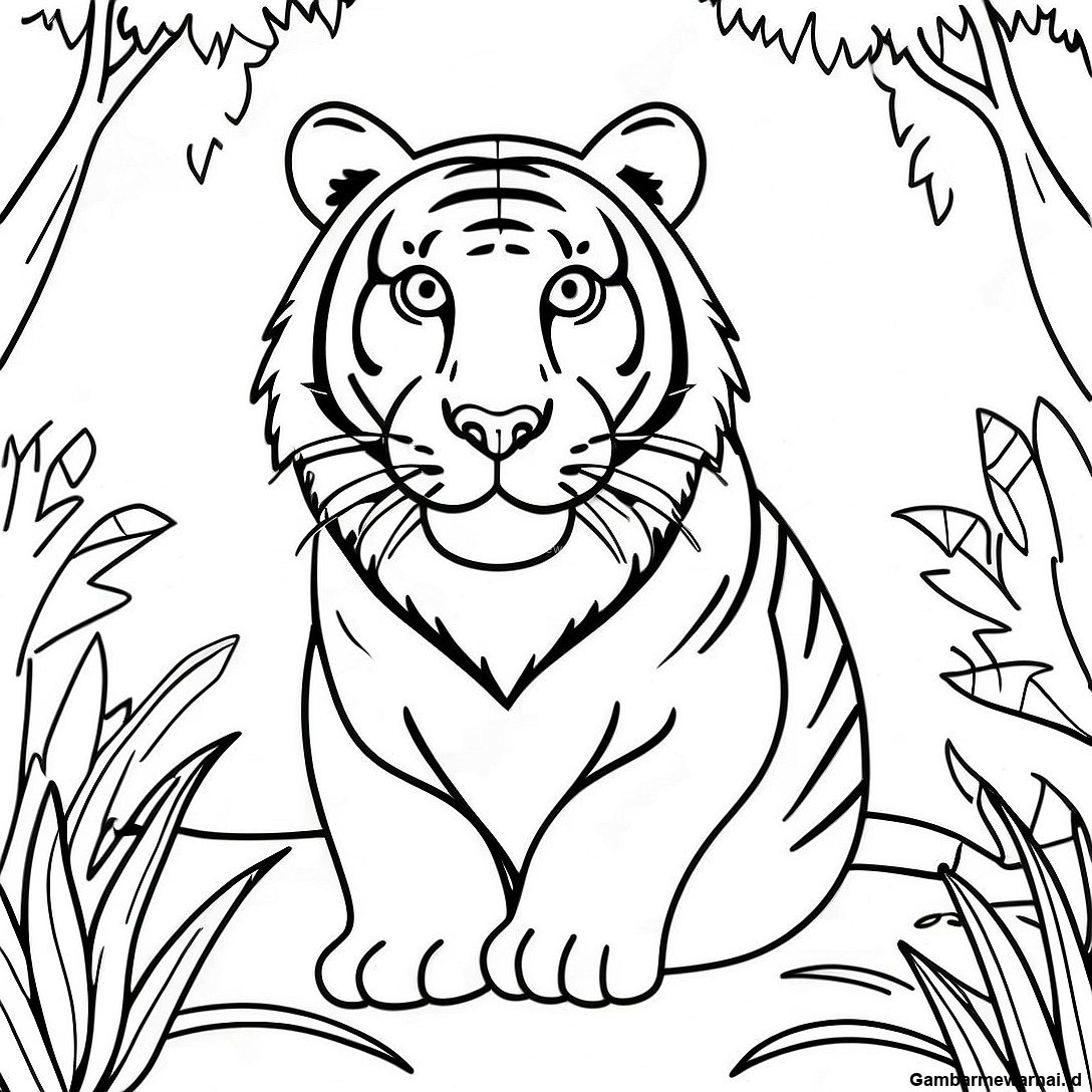Unduh PDF yang Dapat Dicetak dari Harimau Megah Di Hutan Halaman Mewarnai