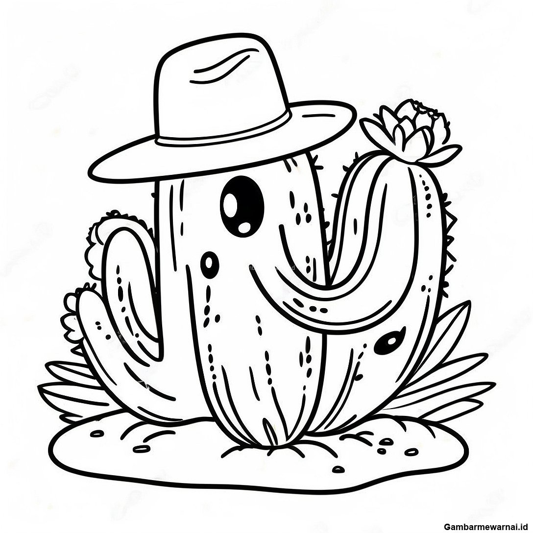 Kaktus Dengan Topi Halaman Mewarnai