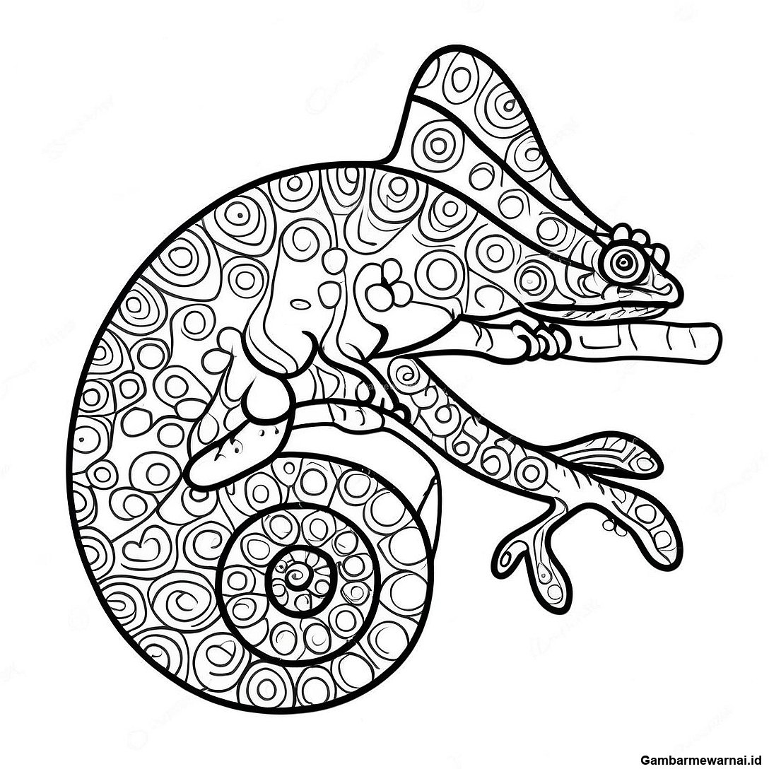 Kameleon Dengan Ekor Pelangi Halaman Mewarnai