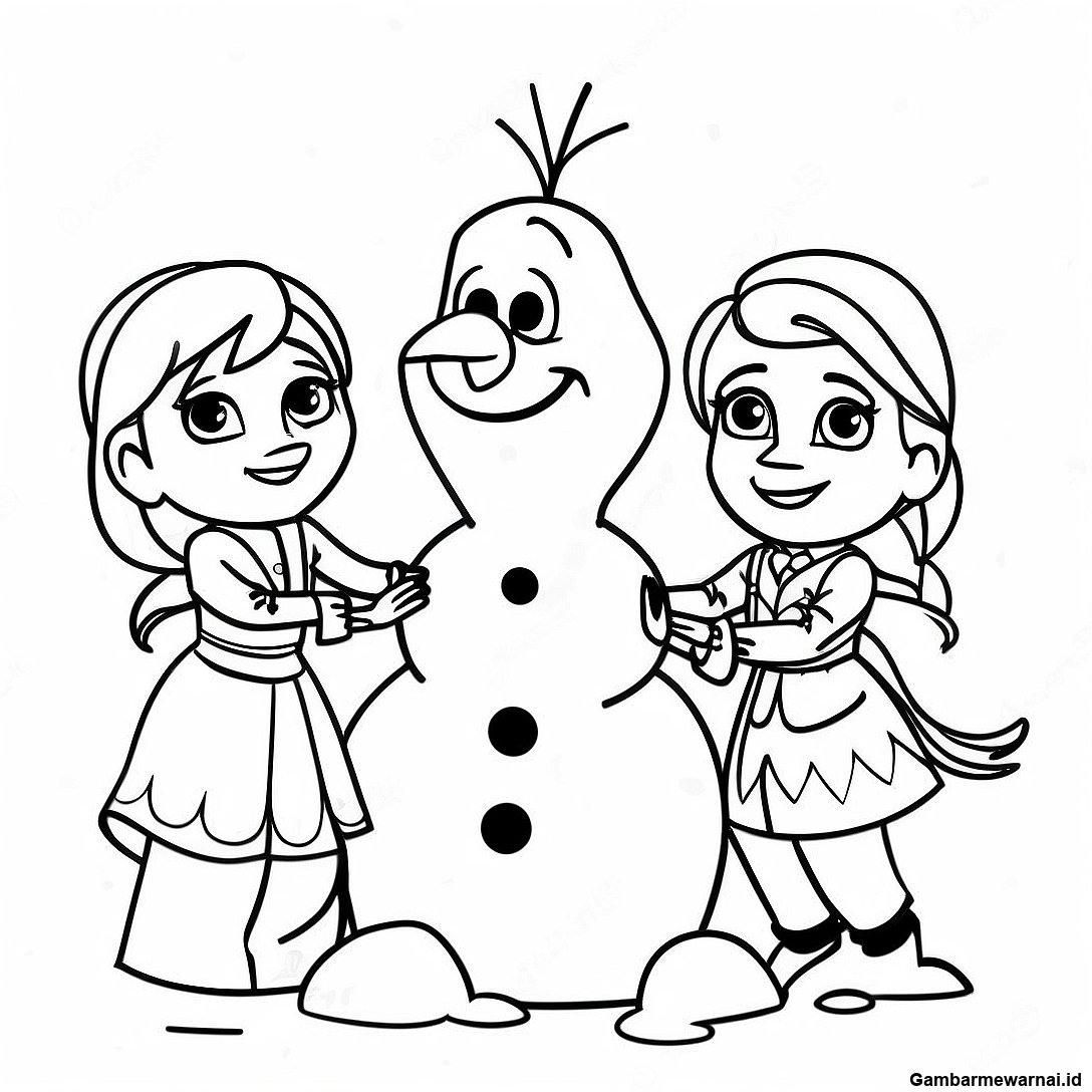 Karakter Frozen Membangun Manusia Salju Halaman Mewarnai
