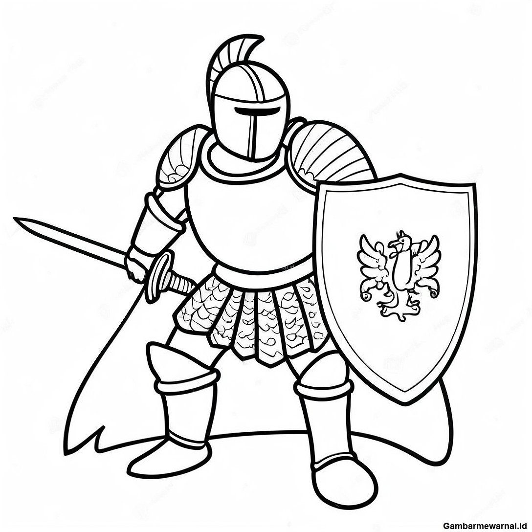Kesatria Perkasa Dengan Pedang Dan Perisai Gambar Mewarnai
