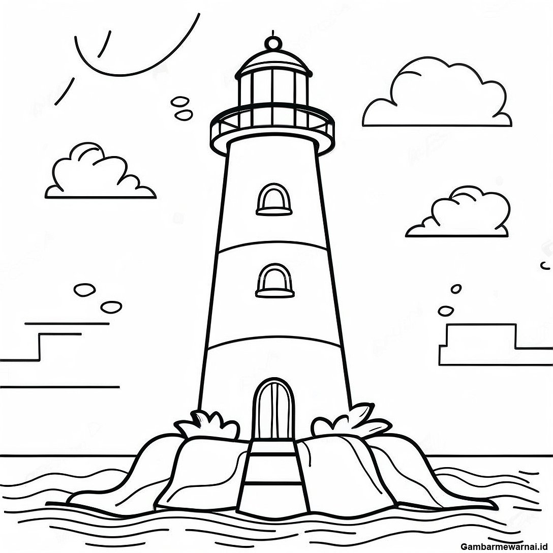 Mercusuar Ramah Dengan Wajah Tersenyum Halaman Mewarnai