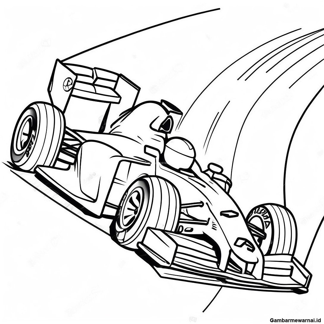 Mobil F1 Meluncur Di Tikungan Halaman Mewarnai