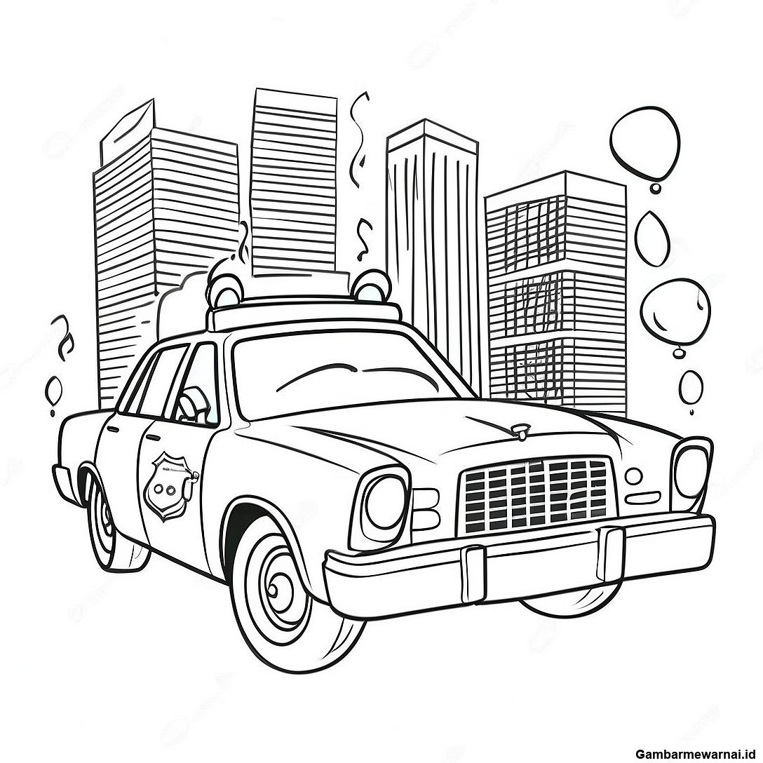 Mobil Polisi Dengan Sirene Halaman Mewarnai