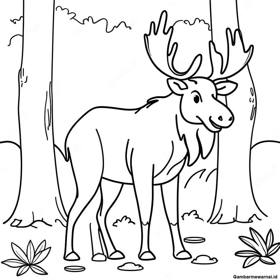 Unduh PDF yang Dapat Dicetak dari Moose Megah Di Halaman Mewarnai Hutan
