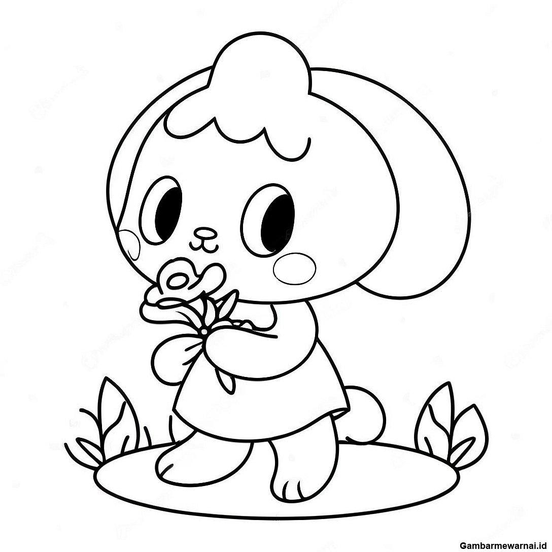 Unduh PDF yang Dapat Dicetak dari My Melody Memegang Bunga Halaman Mewarnai