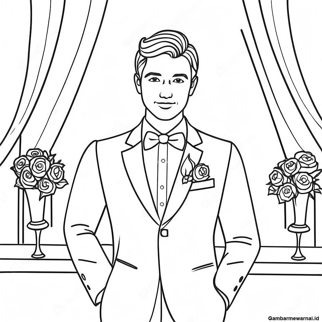 Pengantin Pria Menawan Dalam Tuxedo Halaman Mewarnai