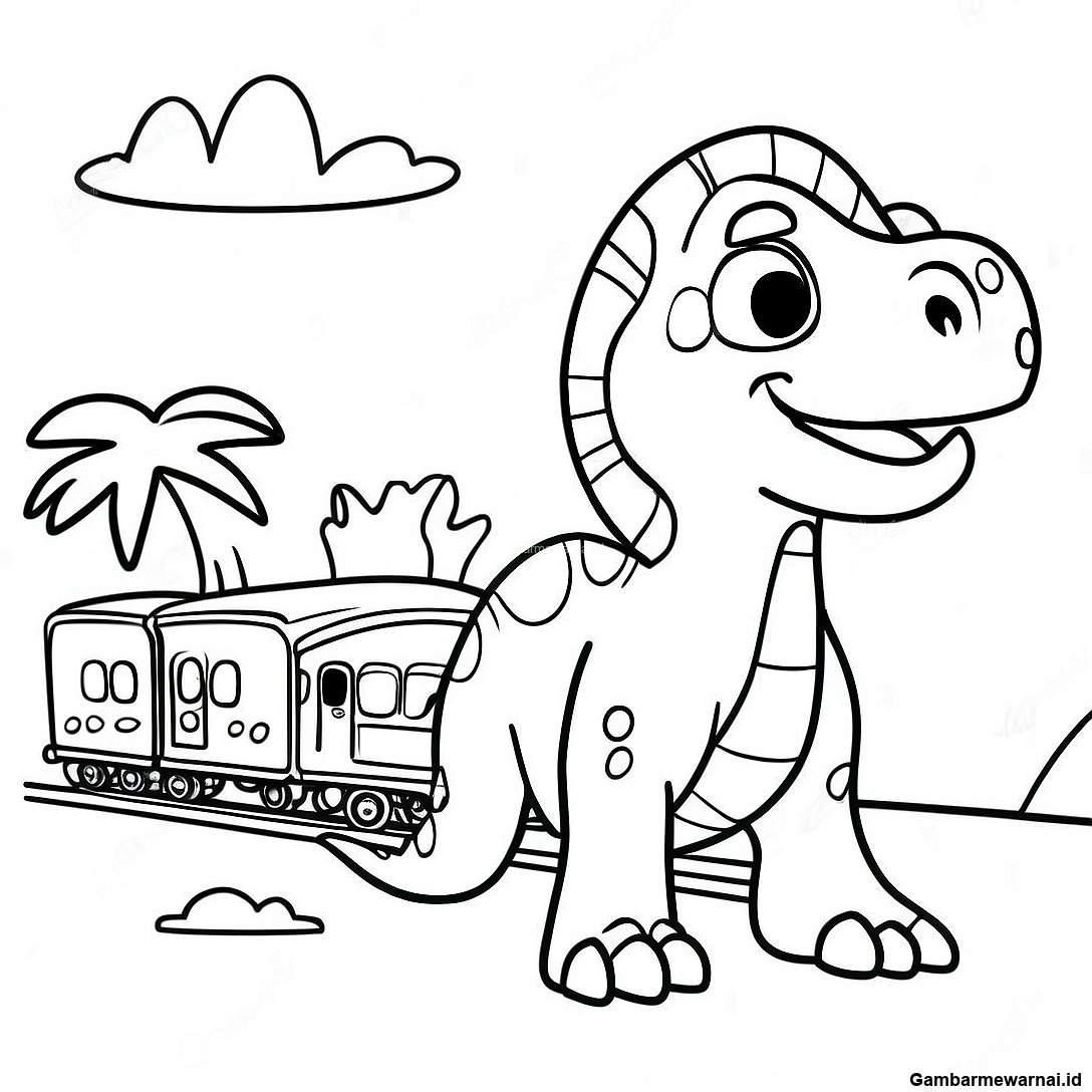 Petualangan Kereta Dinosaurus Berwarna-Warni Halaman Mewarnai