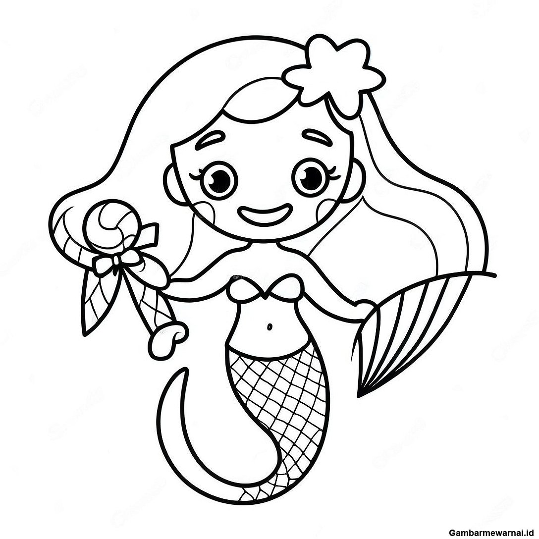 Putri Duyung Meriah Dengan Tongkat Permen Halaman Mewarnai